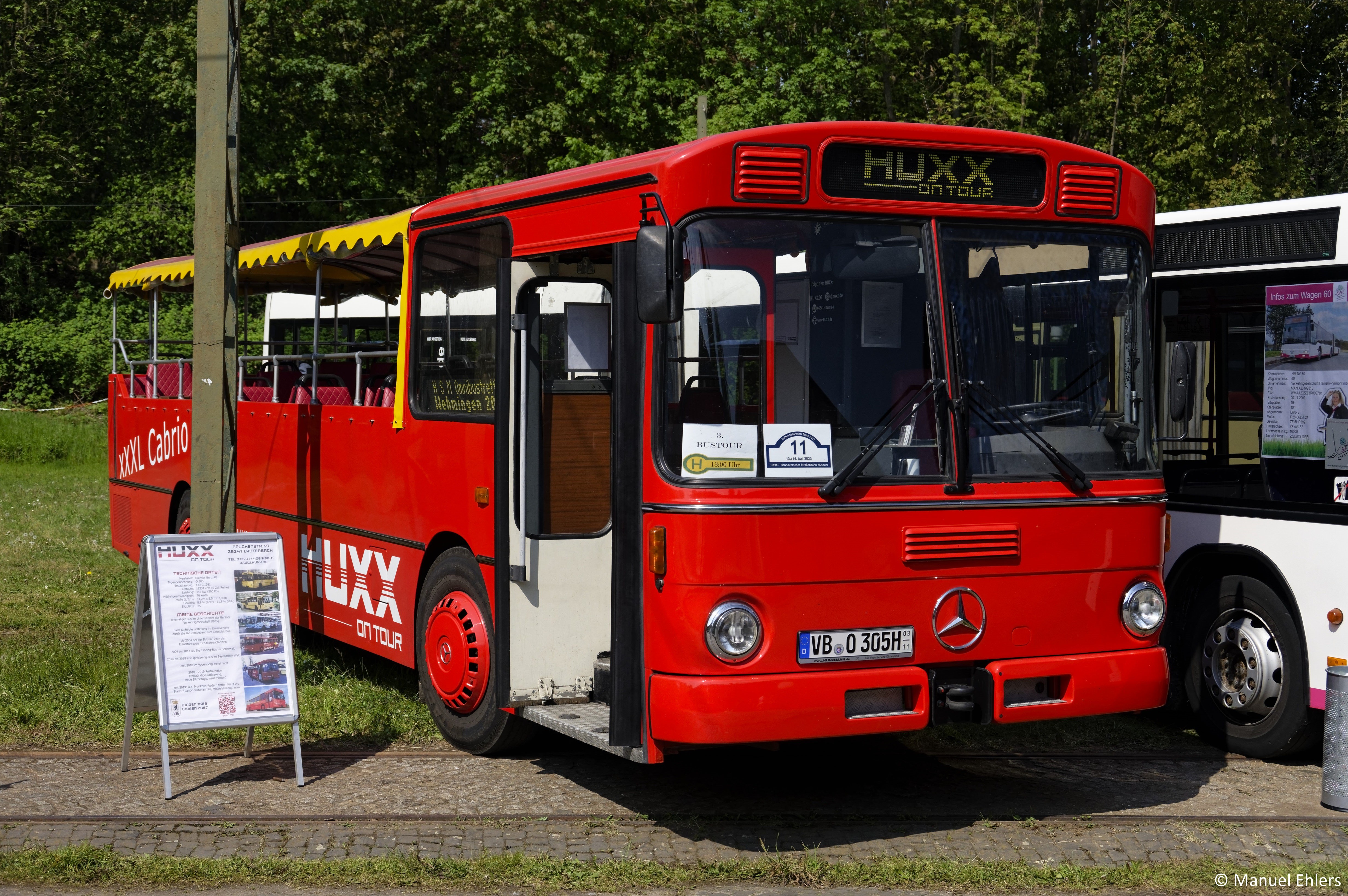 Angesichts meines ersten Besuches des Bustreffens im Hannoverschen Straßenbahn-Museums, dessen Transfer ich von und zu dem Veranstaltungsort im HUXX-Cabriobus verbracht habe, kann zweifelsohne von einem gelungenen Tag sprechen. Der weitläufig offen zugeschnittene Mercedes-Benz O 305, der eine Vergangenheit bei den Berliner Verkehrsbetrieben hatte und gegenwärtig als Eventlocation für Gelegenheitsrundfahrten zum Einsatz kommt, fand sowohl bei den Fahrgästen als auch bei den bekannten Bus-Influencern eine sichtliche Zustimmung.