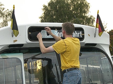 Bereits am Vortag begannen die unmittelbaren Vorbereitungen. Bei der Firma "Die Signmaker" wurden professionelle Folien für die Zielbeschilderung des GÖ-LC 3 (ex Göttinger Stadtwerke, Baujahr 1978) erstellt. Da das Fahrzeug nicht mehr über die originalen Zielfilme verfügte, wurden diese im Stil der alten Rollbänder (weiße Schrift auf schwarzem Grund) nachempfunden und zusammen mit den Originalfähnchen der GöVB angebracht.