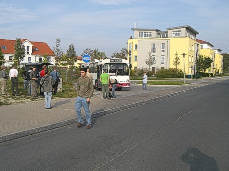 Nach einer kurzen Stadtrundfahrt ging es hoch hinaus auf die Zietenterrassen zur Endhaltestelle der Linie 1 (Grete-Henry-Str.). Dort traf kurz darauf auch der angekündigte "SoFa-Bus" (MAN SG 242) ein.