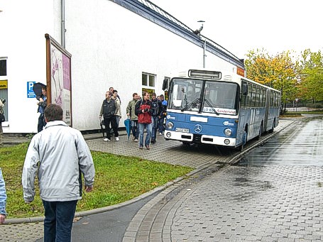 Weiter ging es mit einem besonderen Fahrzeug der Omnibusfreunde Göttingen: Einem MB O 305 G Gelenkbus (ex Flughafen München). Unser Ziel war die Firma Scheithauer in Katlenburg. Herr Rosenthal fuhr uns die Busse aus der Halle, auch wenn der Besuch etwas kürzer ausfiel, da viele Fahrzeuge im Gelegenheitsverkehr unterwegs waren.