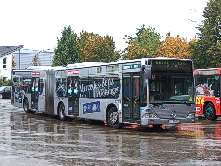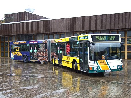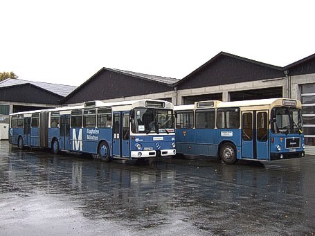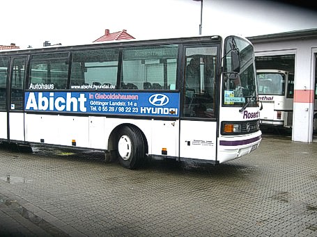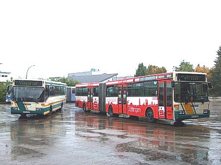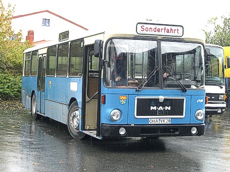 Um 15 Uhr waren wir zu Gast bei der Firma Rizor/Otto-Reisen in Nesselröden. Sofortige Aufmerksamkeit erregte der von der KVB Osterode angemietete MAN SL 200 (ex Novak München, M-NV 6250). Hier trafen auch "Gelenkbus alt" und "Gelenkbus neu" aufeinander, ebenso wie zwei Münchner Originale mitten in Niedersachsen – ein Anblick, der das Herz jedes Busfreundes höher schlagen lässt.