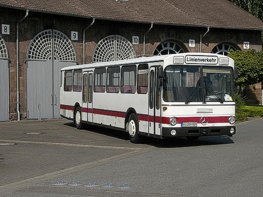 Als Tourbusse kamen diesmal zwei besondere Klassiker zum Einsatz. Der Hauptwagen war ein Mercedes-Benz O 307 (HI-BM 909, Baujahr 05/1986) der Firma Rizor aus Hildesheim. Dieses Fahrzeug hat eine bewegte Geschichte hinter sich: Ex Schütze (Neuendorf), ex Buchmann (Hagenburg) und ursprünglich beim RVH Hannover als H-AV 118 im Einsatz.