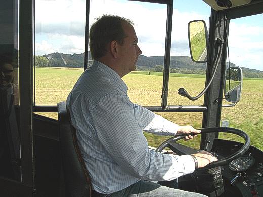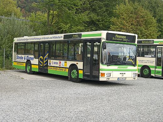 Nach der Mittagspause steuerten wir die Fa. Mönkemeyer in Eschershausen an. Ein Highlight war hier die spontane "Einlegefahrt" mit einem MAN SL 202 nach Stadtoldendorf – hier fuhr der Chef noch selbst! Auch der Abstellplatz der Fa. Regiobus Uhlendorff in Stadtoldendorf wurde besucht.
