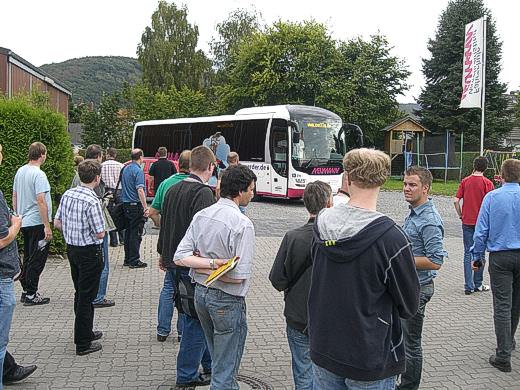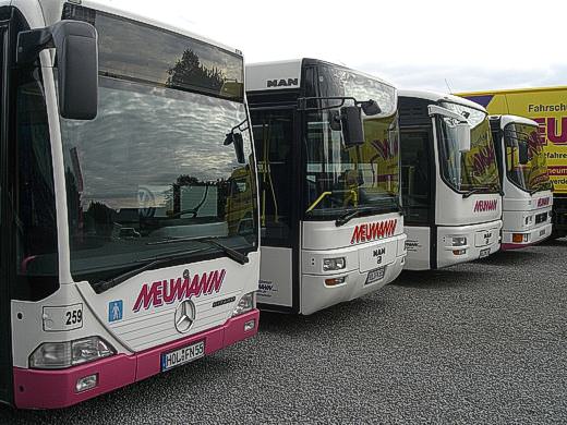 Weiter ging es zur Fa. Neumann nach Bodenwerder. Das Unternehmen besitzt eine ansehnliche Busflotte. Herr F. Neumann rangierte bereitwillig die Fahrzeuge nach den Wünschen der Fotografen, sodass keine Wünsche offenblieben.